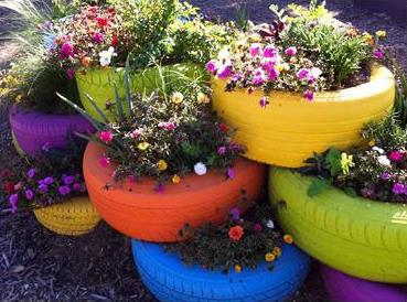 Hoje, dia de Ideia Solta e com o início oficial da Primavera, só podiamos apresentar uma ideia que envolvesse flores. A reciclagem de uns pneus usados, que depois de pintados serviram de floreiras. Temos a certeza que o jardim ficou mais alegre com tanta cor e o meio ambiente agradece.